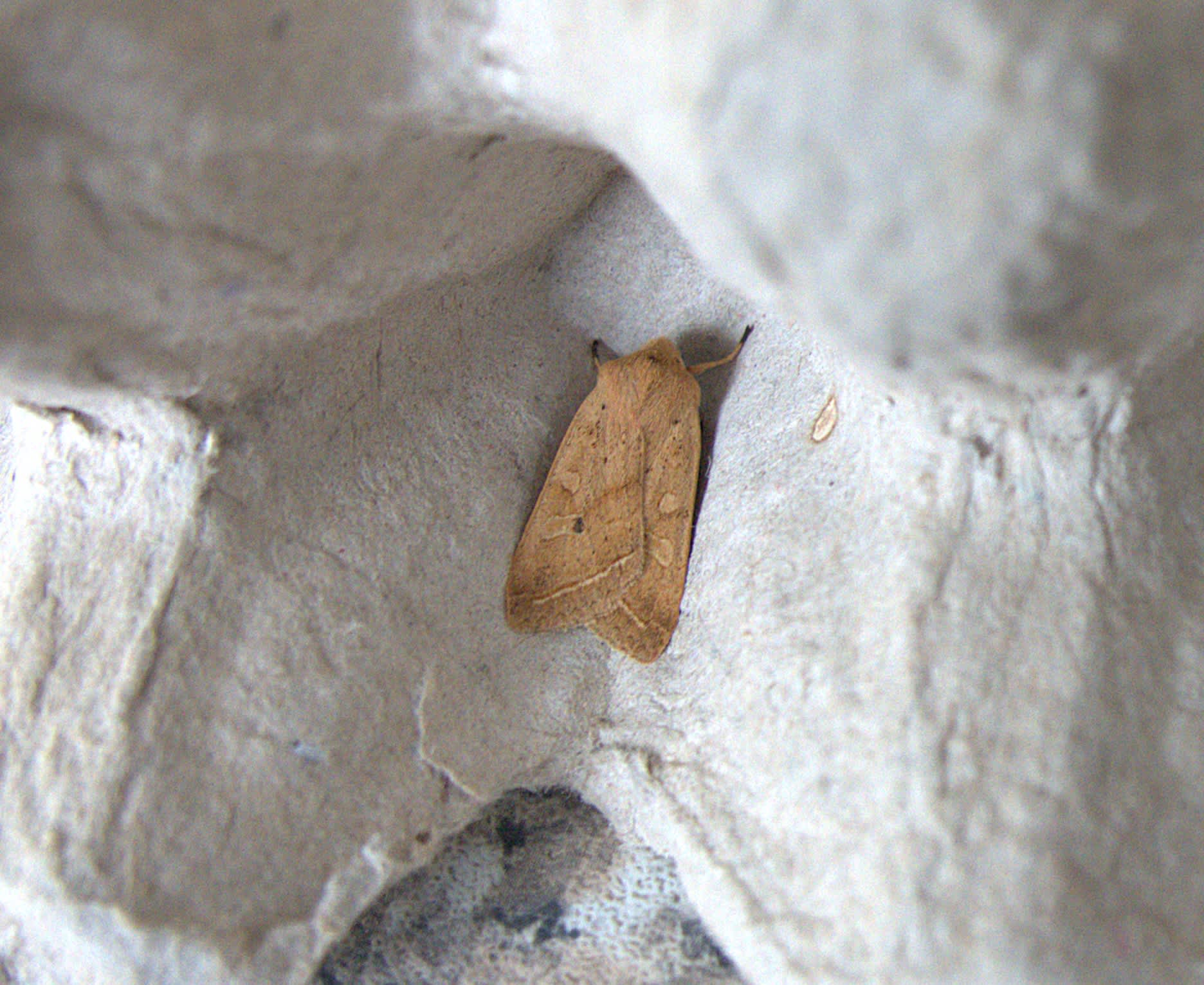 Considering the clear night, thus low temperature, a reasonable number of moths (62), but little variety (6 spp. only). Singletons of Square-spot Rustic, Broad-bordered YU and Centre-barred Sallow, 8 Black Rustics, 10 Large YU and 41Lunar UW. And one Caddis.